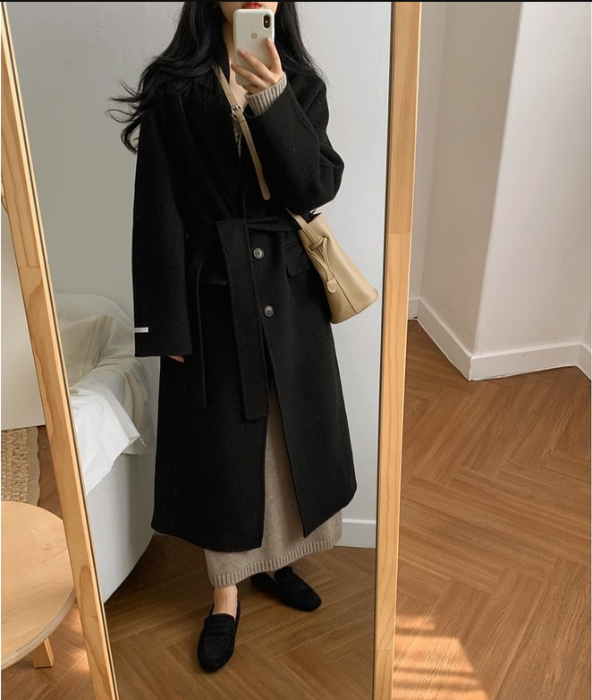 울 소재의 루즈핏 핸드메이드 롱코트로 순수 손바느질로 봉제공정이 까다롭고 장인들이 만듭니다.