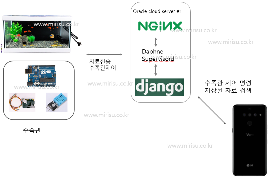 django channels를 이용하여 실시간으로 수족관의 컨트롤러와 통신을 하도록 구성하다보니 ASGI기반 개발을 하였는데, 서비스 단계에서 서버 설정을 위하여 자료를 찾아보니 NGIX+UWSGI+DJANGO로 서비스를 구성하는 자료는 많이 있는데 Daphne를 이용하여 서비스를 하도록 서버 설정하는 자료는 많이 있지 않았습니다.