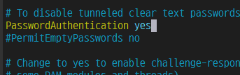 su vi /etc/ssh/sshd_config를 실행하여 다음과 같은 내용을 변경하여 줍니다.