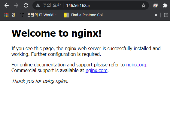 웹서버가 설치된 IP로 접근하면 위의 화면과 나오면 성공입니다.