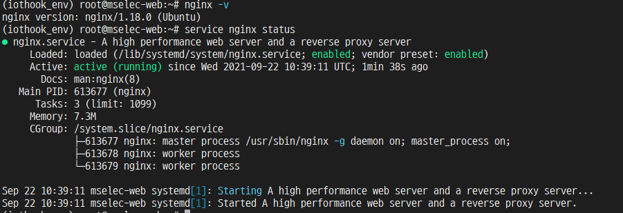 아래 명령어로 nginx 버전과 상태를 확인 할 수 있습니다.