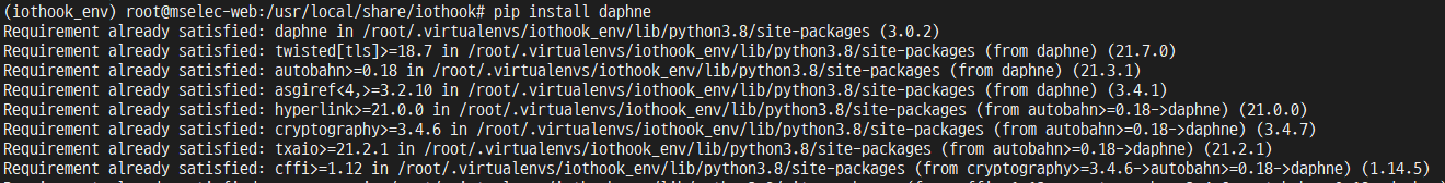 daphne는 python 패키지로 pip을 통해 설치 할 수 있습니다.